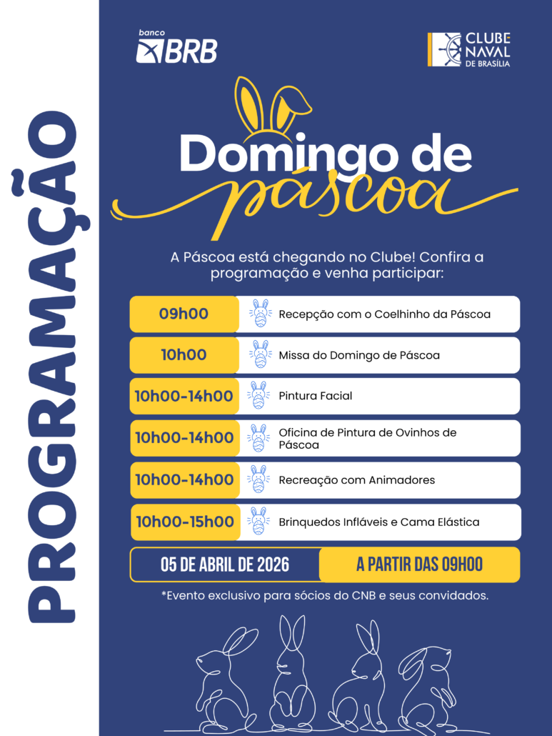 A Páscoa está chegando aqui no Clube Naval, e preparamos uma programação especial para celebrar essa data com muita alegria e diversão!