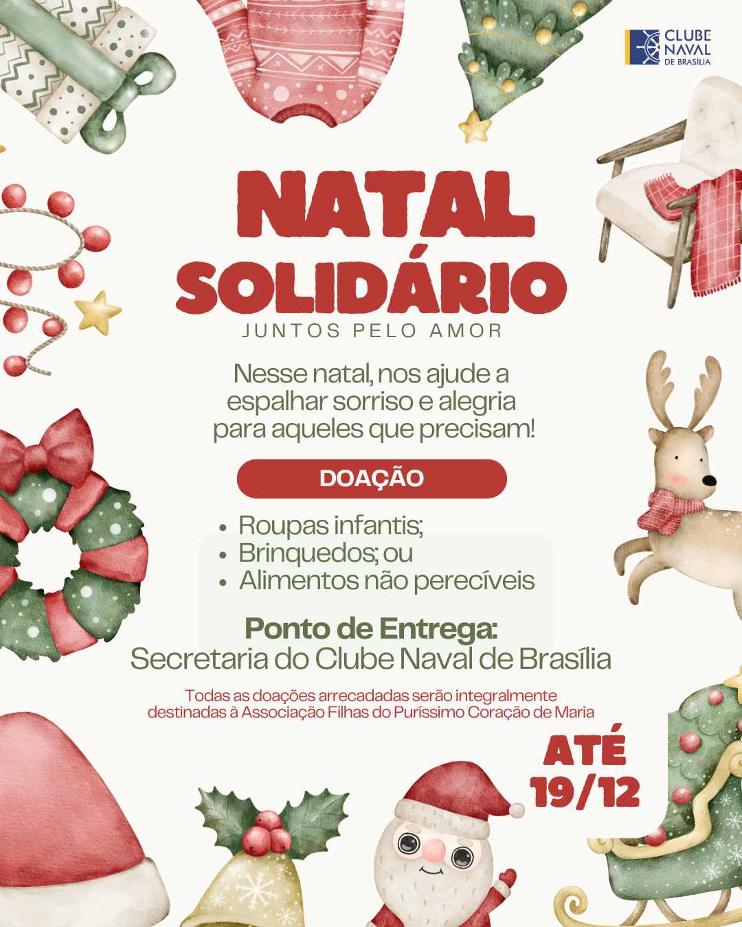 Para este natal, o Clube Naval de Brasília convida você a fazer parte de um movimento que vai além das celebrações. É a chance de estender a mão, compartilhar afeto e levar esperança a quem mais precisa.
